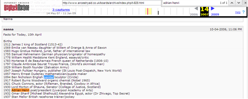 Fig 2 – search result for “Adrian Henri” NEAR “painter”, post on www.ancestryaid.co.uk (3) [site taken down since original publication]