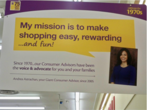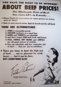 Much as the NCL and Peterson articulated and exposed how business and commercial markets not only reproduced but generated power inequalities, they also felt that consumers and shoppers frequently let progressives down by not exercising their own buying power to redress such imbalances. Progressives felt their analysis was let down by their chosen agents – markets failed consumers, but consumers failed to make markets work. In short, the market-based approach of much consumerism was as subject to the inequalities and imperfections of the market as those commercial institutions, cultures and norms they so damningly critiqued. And the interpretive intervention this article makes is to interrogate the history of this market-based model and approach to consumer action. This was a tension Peterson recurrently encountered and attempted to resolve – in state-level regulation, at Giant and ultimately at the United Nations – and speaks to a more generic tension in progressive, reforming politics: how to improve actors whose current condition you are more-or-less criticizing. It was a tension particularly evident when she became Consumer Advisor for Giant, the Virginia-Maryland-DC supermarket chain, in 1970. An avowed and longstanding consumer activist in the employ of a corporate chain, paradoxical as this may seem, presents a rich empirical case study amidst the ideological contest between the Ralph Nader-led critiques of business and emergent neo-liberalism in the 1970s. Besides explaining how the Cold War meant progressives had to work with market politics, it also makes the point that market politics had a left-liberal-progressive lineage that pre-dated both the Cold War and neo-liberalism.